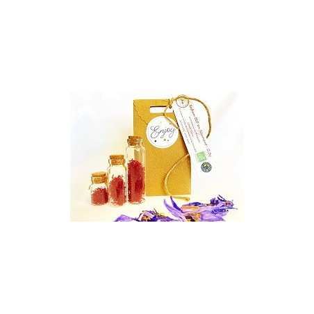 Notre safran artisanal en filaments, pur et non mélangé, s’adresse aux cuisiniers exigeants, aux gourmets et à tous ceux qui recherchent une épice rare, authentique et naturelle.